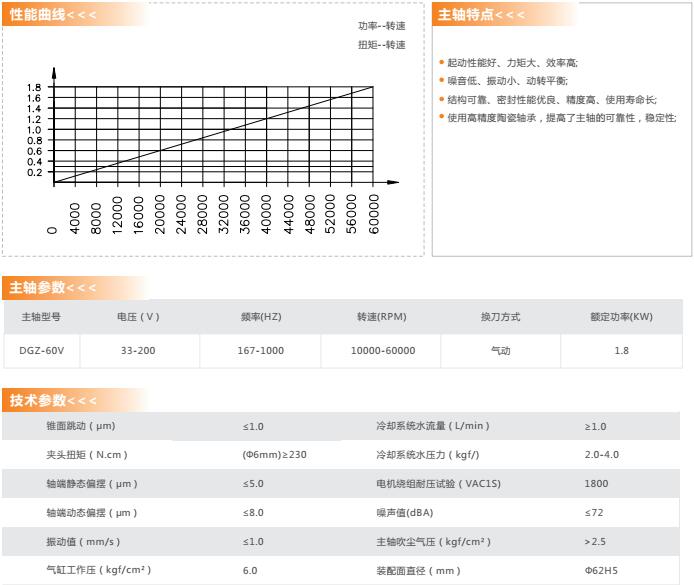 使用高精度陶瓷軸承,提高了主軸的可靠性,穩定性。